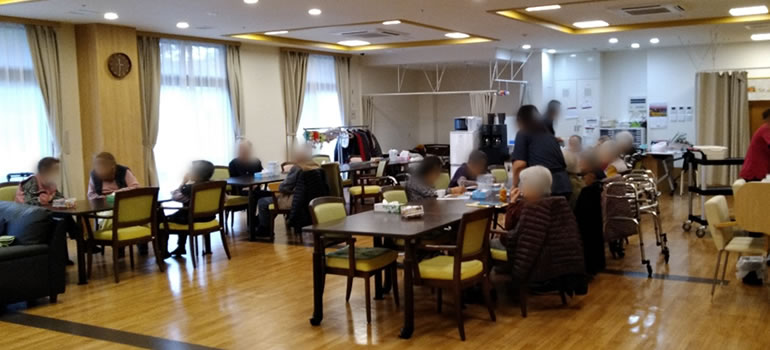 ▲共有スペース デイサービスの利用者様が寛がれる共有スペースです。落ち着いた雰囲気となっております。