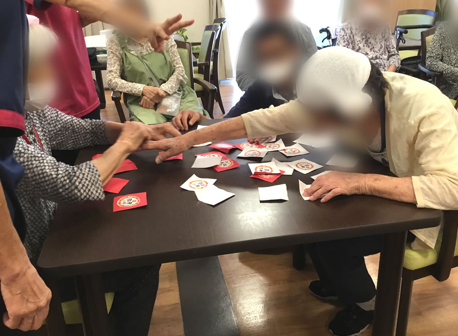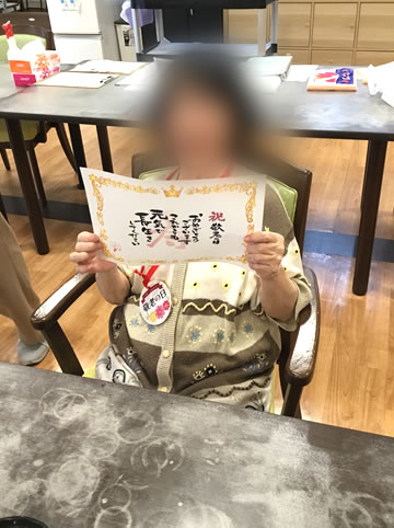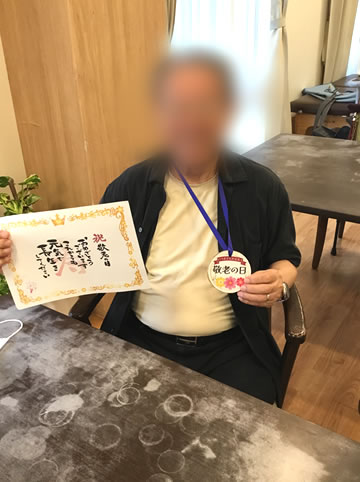 敬老会では、「ご長寿お祝い」・「紅白ひっくり返しゲーム」を実施しました。 ゲームは大盛り上がりで、 お祝い年の方には感謝状とお祝いメダルをプレゼントさせていただきました。 お祝いすると、皆様大変喜んでいただけました。 また、昼食にはお祝い膳をおやつには紅白まんじゅうを召し上がって頂きました。